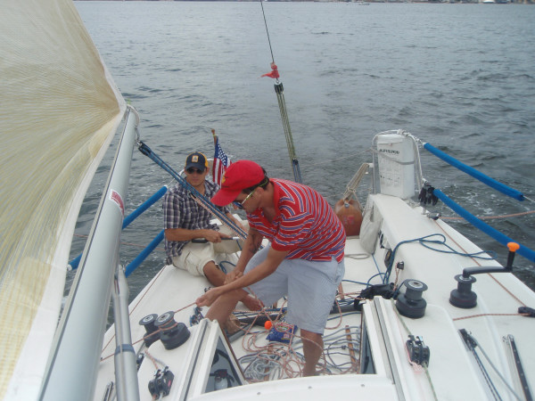 It's been really tough finding time to update the news here. In short, we got the boat put together the day before the Edlu Distance Race, we finished the race in a fresh gale, Photoboat got some great shots, we raced again the following weekend in the NYAC Stratford Shoal Race and won the double-handed division, and we got 1st place in the first two Wednesday night races. Thin Man is back and we're having a blast!